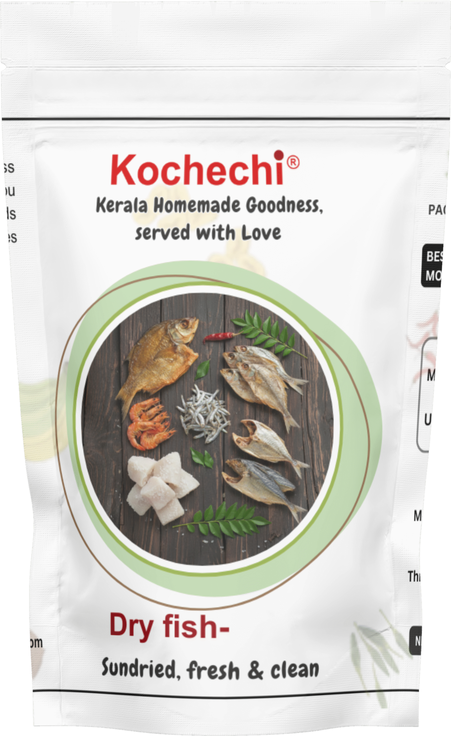 Prepared in small batches, Kochechi Dry Sting Ray contains no artificial preservatives or additives. The drying process enhances the natural umami of the fish, making it ideal for slow-cooked dishes with coconut, tamarind, chilli, and traditional Kerala spices.