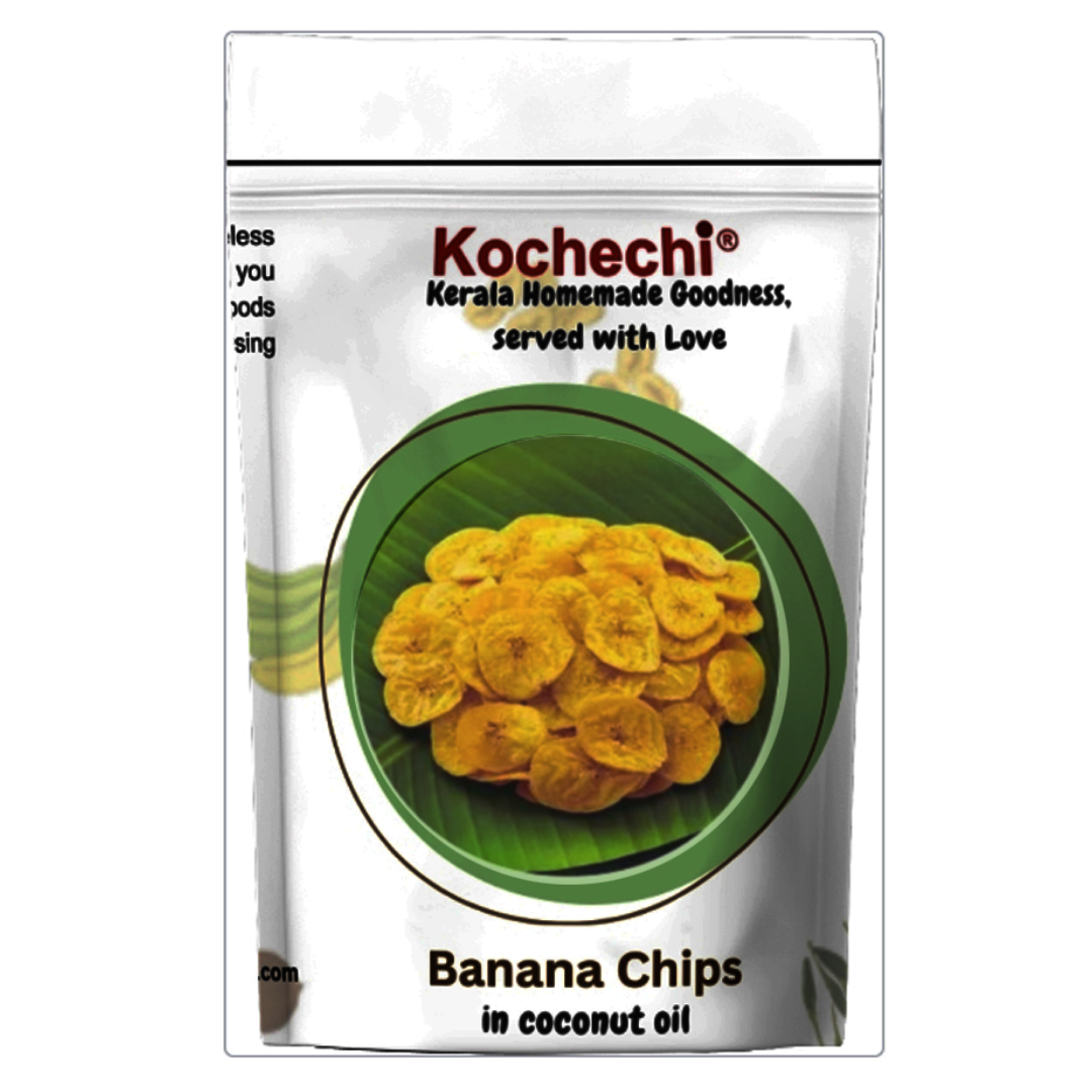 - Kochechi raw banana chips are prepared from bananas and coconut oil produced in organic manner.