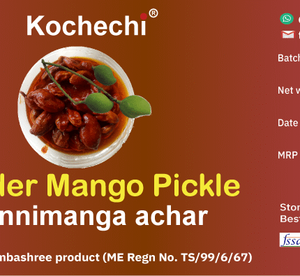 Indulge in the mouth-watering flavor of Kochechi salted tender mango, a traditional delicacy crafted with handpicked, organically grown mangoes from the lush orchards of Kerala. This is the perfect choice for those who cherish not only the taste but also the nutritional benefits of mangoes, rich in vitamins, antioxidants, and essential minerals that support overall well-being.