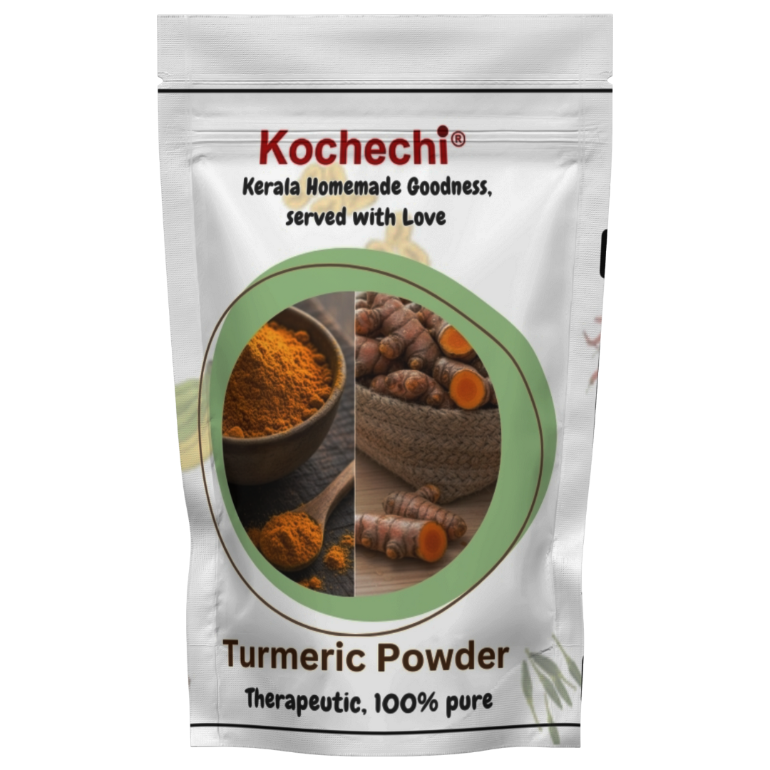 Kochechi Turmeric Powder is made from pure Kerala-grown turmeric, cleaned, dried, and ground in small batches to retain its natural colour, aroma, and medicinal value. No blending, no artificial colour, and no chemical polishing – just the true richness of handpicked Kerala turmeric.